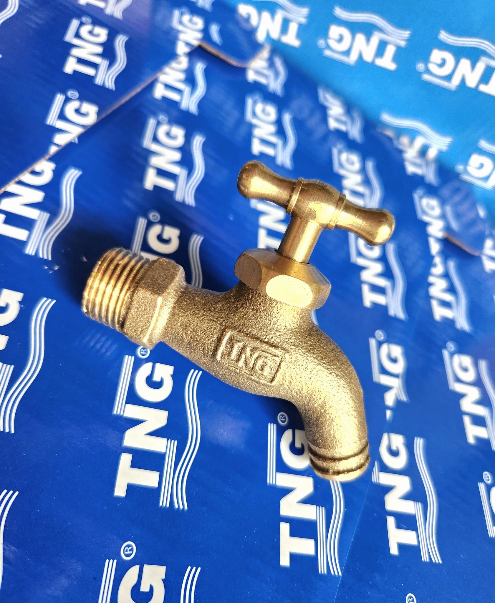 Vòi đồng vặn TNG thân nhỏ Kích cỡ: DN15, DN20 Trọng lượng: + DN15: 175g + DN20: 190g Chất liệu: Đồng, có dập logo TNG nổi rõ nét Sản phẩm được đựng trong túi hàn kín